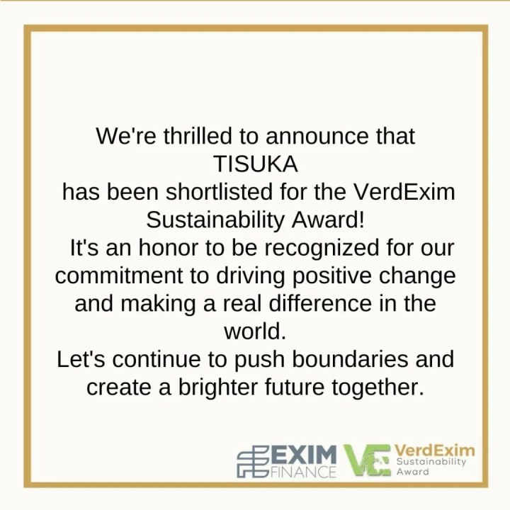 Tisuka had the privilege of being nominated for the Verdexim Sustainability Award by Exim Finance, a financial institution in Dubai, UAE, focused on sustainable finance and investing in climate-friendly development.